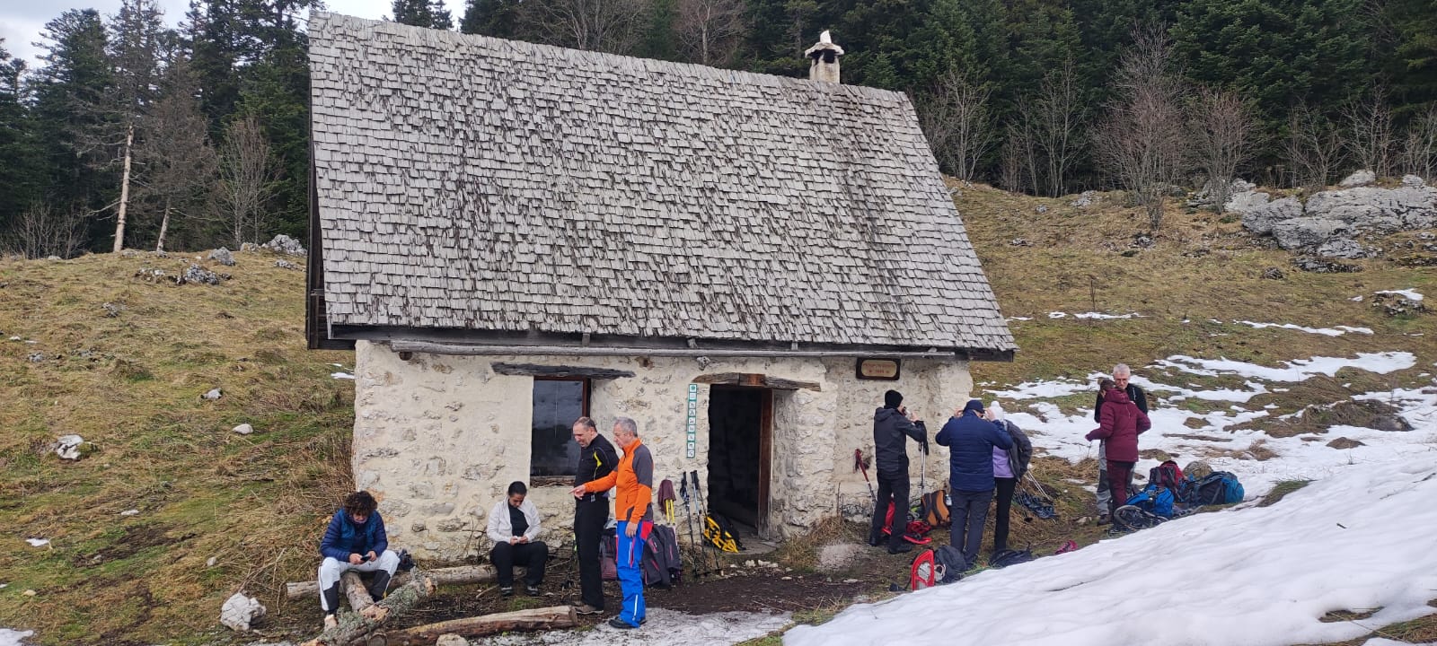 Arrivés au domaine vers 13 h 30, nous avons retrouvé Olivier et une partie du groupe ; Laurence, Christophe et Amel sont arrivés plus tard dans la soirée. Après avoir pris un déjeuner frugal, composé principalement de sandwichs, nous avons fait une petite randonnée sous la pluie pendant une heure, afin de voir l’état du manteau neigeux, avant d’arriver devant une petite source presque enfouie sous la neige, puis de faire demi-tour en direction du parking.