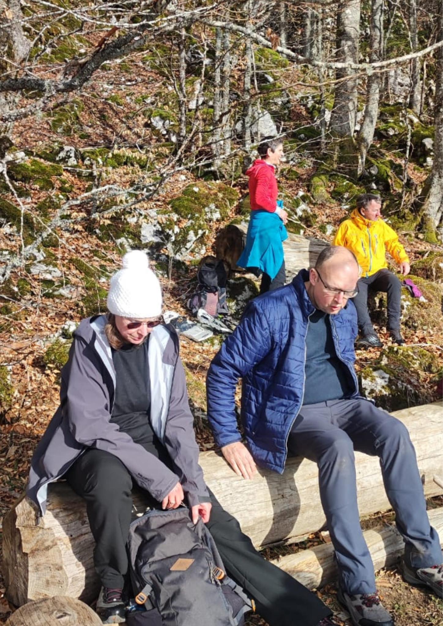 ceux qui voulaient s’arrêter et déjeuner avec Olivier dans le premier groupe, ceux qui voulaient progresser vers le pas d’Ernadant avec Laurence pour voir le panorama et manger plus tard dans le second groupe.